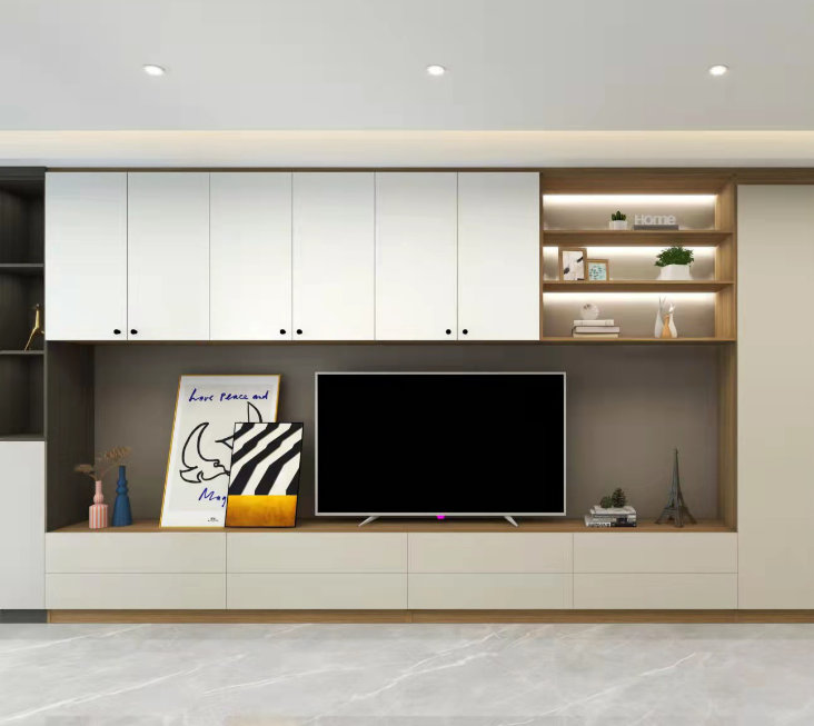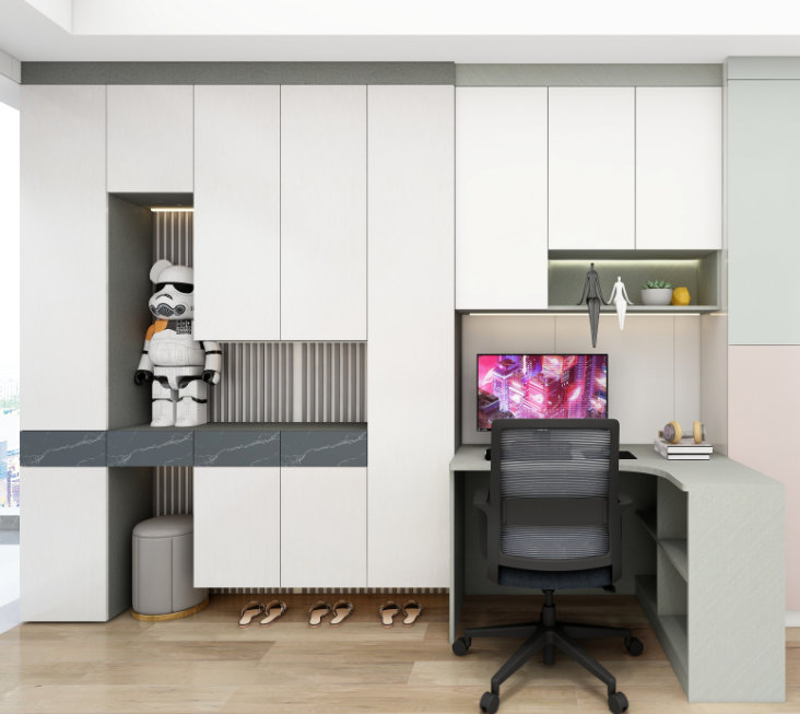 前台 玄关柜玄关柜是一体式+到顶设计,获得超大扩容收纳空间,打造家庭收纳的“半壁江山”。局部中空+展台处理,摆放装饰品小物件点缀,收纳功能和美观空间两不误。 餐...