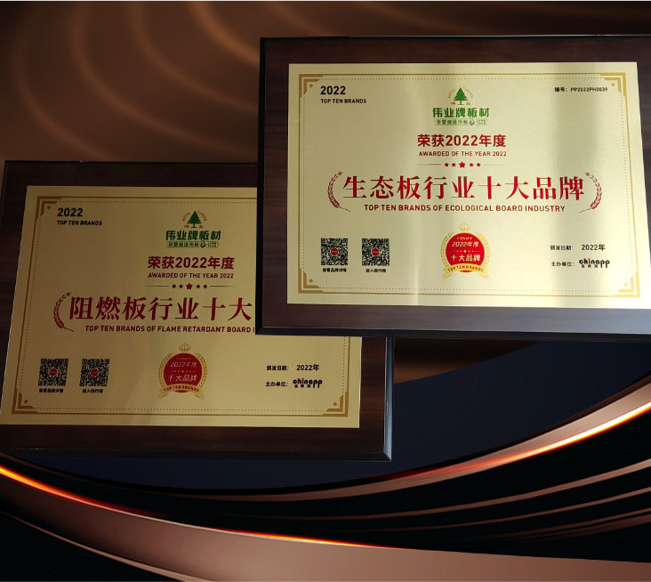 伟业荣耀又获2项年度大奖生态板行业十大品牌阻燃板行业十大品牌 近日,由品牌网主办的“2022年度十大品牌”评选活动正式发榜,伟业牌板材一举斩获“生态板行业十大品...