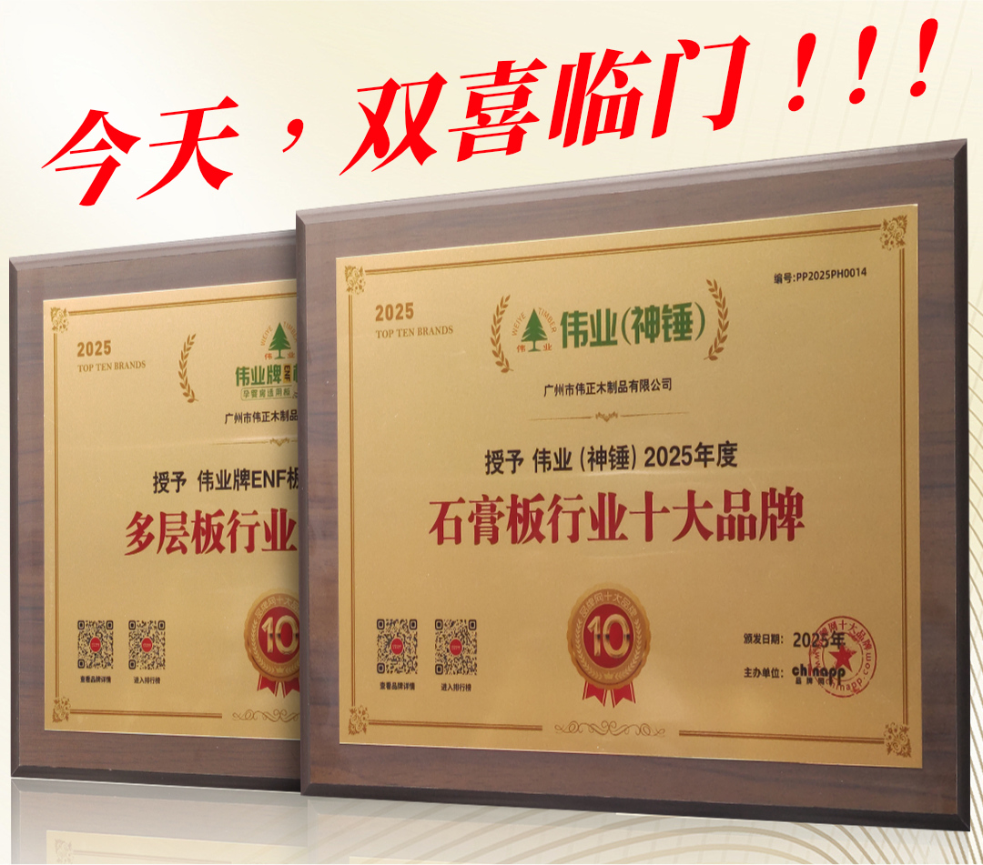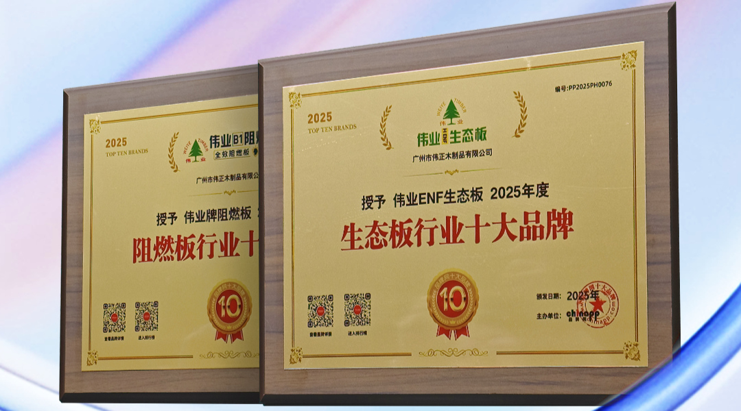 近日,伟业牌以 “双冠王” 之姿震撼登场!在品牌网权威发布的 2025 年度生态板十大品牌与阻燃板十大品牌榜单中,伟业牌凭借突破性环保技术与行业领先阻燃工艺,强...