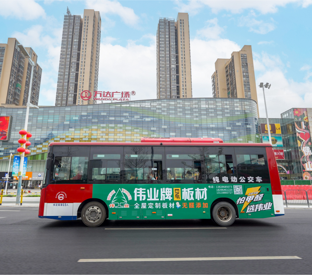 全城瞩目,万众期待伟业牌ENF板材公交车体广告上线了 近日,伟业牌ENF板材公交车体广告正式上线,为桂林的城市风景增添了一抹亮眼的色彩。这一广告形式上线,视觉盛...