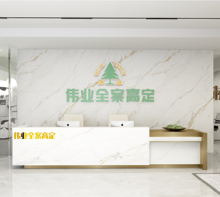 展厅类型:专卖店展厅地址:河北正定展厅产品:伟业ENF板材/伟业全案高定 前台前台是岩纹背景墙+绿色“伟业全案高定”logo,给人强烈的视觉冲击力,在方寸之间,...