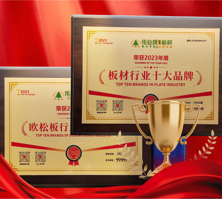 日前,2023年度品牌网“十大品牌”榜单重磅发布,伟业牌ENF板材一路过关斩将,再度斩获“板材行业十大品牌”、“欧松板行业十大品牌”两项殊荣,为品牌荣誉加冕!...
